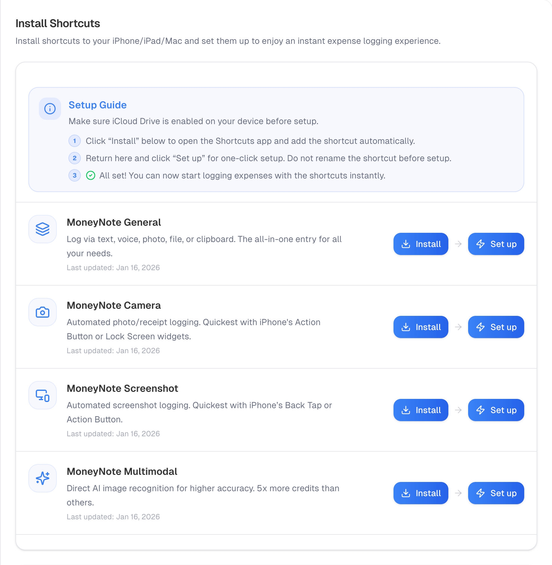 After installing Shortcuts, you can log expenses at the system level without opening the app.